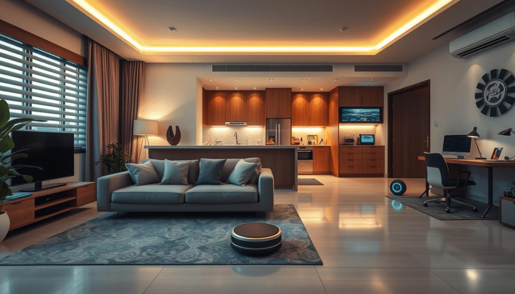Independent houses and villas have more room for smart home setups. Homeowners can pick full smart home systems, like climate control, security surveillance, and smart lights. The bigger space allows for more devices to be added.